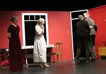 The play was revived in Paris during the authors' lifetimes, at the Théâtre des Folies-Dramatiques in 1903 and the Théâtre de la Gaîté in 1906.[5] After Feydeau died in 1921 his plays were neglected until the 1940s and 1950s; the first Paris revival of L'Hôtel du libre échange after his death was at the Théâtre Marigny in 1956 with Olivier Hussenot as Pinglet in a production by Jean-Pierre Grenier.[6] Since then there have been more than ten new productions in Paris and other French cities.[7] The Comédie-Française admitted the work to its repertoire in 2017, in a production by Isabelle Nanty, starring Michel Vuillermoz as Pinglet.[8]
