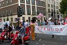 Participants at the 2011 Pride in London marching against hatred and homophobia in Bermuda.