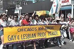 Chicago has a vibrant LGBT community. The first pride parade took place in 1970, a year after the Stonewall riots. Since 2013, the Chicago Pride Parade has attracted about 1 million attendees each year.[4] 2019 polling from the Public Religion Research Institute showed that 74% of Illinois residents supported anti-discrimination legislation protecting LGBT people.
