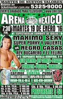 27. "Lucha Libre función martes12 de enero". Yahoo! Deportes (in Spanish). January 13, 2016. Retrieved December 1, 2019.