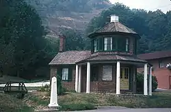 La Vale Tollgate House is a historic toll house in La Vale, Allegany County, Maryland, United States. It is a two-story brick structure built in 1835–1836, with seven sides—a basic polygon plan. A one-story Tuscan-columned porch extends around the five outer sides of the polygonal portion. On top is a non-functional reconstructed cupola. The building served as a toll house on the Cumberland or National Road and was the first such structure to be erected.[2]