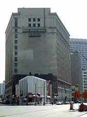 The Lafayette Building was a high-rise office building located at 144 West Lafayette Boulevard in downtown Detroit, Michigan. It was built in 1923 and occupied a triangular lot, bordered by Michigan Avenue, West Lafayette Boulevard, and Shelby Street. The building was 14 floors tall, with one basement floor, and 13 above-ground floors. The office building was designed in the neo-classical architecture style by C. Howard Crane who built many of Detroit's theaters. It is built with mainly brick, limestone, and terra cotta. Its triangular form mimicked the Flatiron Building in Manhattan.[1]