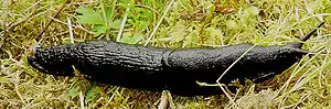 A folktale published by Jón Árnason in 1862, collected from a schoolgirl of Múlasýsla in 1845[21] tells the story of the great serpent in Lagarfljót which originally started out as small "heath-worm"[22] or "Heath Snake"[23] (Icelandic: lyngormur) before it grew to unmanageable size. It has been explained elsewhere that this "heath-worm" is actually a type of snail (Icelandic: brekkusnegill),[24][25] or rather the black slug, Arion ater.[26][27][lower-alpha 4][lower-alpha 5]