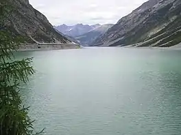Lago di Livigno or Lago del Gallo is a reservoir in the Livigno valley. The reservoir is mostly in Italy whereas the Punt dal Gall arch dam is crossed by the border with Switzerland (Zernez, Grisons).