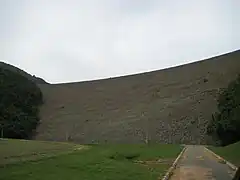 The Lake Cerrillos Dam is located about four miles (6 km) northeast of Ponce. Construction of the dam started in 1984. After its completion in 1992, it still took a few more years for the initial filling of the reservoir.[5] Lake Cerrillos Dam has a total capacity of 59 million cubic meters. In lieu of flood gates, it provides more than 80,000 cubic meters of water daily to the local population through a 434-meter long by 6 meter-wide tunnel at the dam base.[5]