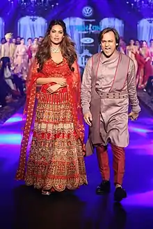 Dalmia has dressed some of the leading Bollywood celebrities such as Esha Gupta,[7] Gauahar Khan,[8] Akshay Kumar,[9][10][11][12] Isha Koppikar, Sunny Leone and Bollywood Film producer Aly Morani[13] among several others. He has also dressed India's multiple Grand Slam champion Leander Paes, Tennis sensation Damir Džumhur, Russia's upcoming star Daniil Medvedev, US's Nicholas Monroe and Indian rookie Jeevan Nedunchezhiyan in Aircel Chennai Open fashion show.[14][15][16] Apart from this, Dalmia has led many fashion shows as a leading designer and received an immense response for his innovative launch activities and collections[17]