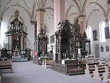 Unlike the other English monasteries in exile, Lamspringe was a large abbey rather than a small priory, and was wealthy, with wide estates.[3] The community's wealth and status were reflected in the quality of the building works undertaken. The abbey church, serious work on which began in 1691 under abbot Maurus Corker, and the remaining monastery buildings, executed in rather grand style by Yorkshireman abbot Joseph Rokeby up to 1731, still remain virtually intact.[4]