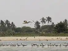 The Langue de Barbarie National Park (French: Parc National de la Langue de Barbarie) is located at the southern edge of the peninsula. Covering an area of 2,000 hectares (4,900 acres), it is home to an abundant variety of bird species and three species of turtle, including the critically endangered hawksbill sea turtle.[3][4] The park was named a Ramsar site in 2021.[2]