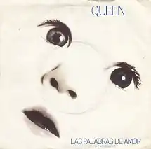 "Las Palabras de Amor (The Words of Love)" is a rock ballad by the British rock band Queen. It was released as the third single from their 1982 album Hot Space. It is sung mostly in English, but with several Spanish phrases. Written by guitarist Brian May, the song proved more popular in the United Kingdom than their previous single ("Body Language"), reaching No. 17 in the UK Singles Chart.[1]