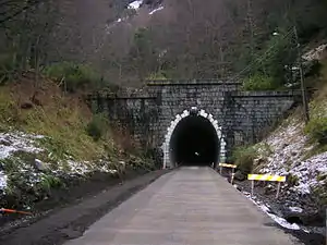 This tunnel allows only one-way traffic, which is regulated by a toll station where a fee of 400 pesos ($0.53 USD) per car is charged.[1] Its average traffic is about 450 vehicles daily, including some heavy fuel trucks coming from Argentina. An alternative to this tunnel is the old scenic gravel road Cuesta de Las Raíces to be taken northwards about 5 kilometres (3.1 mi) before the western or 11 kilometres (6.8 mi) before the eastern entrance.