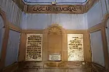 The Lascar War Memorial, located on Napier Road in the Hastings area of Kolkata, is a memorial dedicated to the memory of the 896 lascars (sailors from the Indian subcontinent) who died serving on ships of the Royal Navy and British Merchant Service during World War I.[1][2][3]