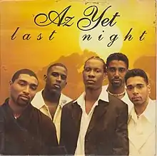 "Last Night" is a song by American R&B group Az Yet, produced by Babyface and Mervyn Warren, and released as the first single from the group's debut album, Az Yet (1996). The song became the group's first hit, reaching number nine on the US Billboard Hot 100, number one on the Billboard Hot R&B Singles chart, and number four on the Billboard Top 40/Rhythm-Crossover chart. Additionally, it reached number two in Australia, number six in New Zealand, and number eight in the Netherlands. The song was also included on The Nutty Professor soundtrack.