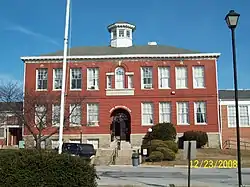 Proposed in 1897, Laurel's seven-term mayor Edward Phelps succeeded in constructing the first high school in Prince George's County in 1899, despite several financial obstacles, by personally assuming the financial risks in doing so. The original building built for $5,000, now known as the Phelps Community Center, still stands at the northeast corner of Montgomery and Eighth Streets.[32] It was listed on the National Register of Historic Places in 1979.[33]