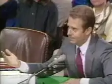 Tribe testified at length during the Senate confirmation hearings in 1987 about the Robert Bork Supreme Court nomination, arguing that Bork's stand on the limitation of rights in the Constitution would be unique in the history of the Court.[28] His participation in the hearings raised his profile outside of the legal realm and he became a target of right-wing critics.[28] His phone was later found to have been wiretapped, but it was never discovered who had placed the device or why.[28]