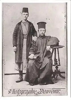 There, the Greek Vice Consul of Monastiri Dragoumis briefed the Tsamis brothers about the establishing of the Association for the National Defence who had, according to its statutes, for the "defense of the Greek communities against any enemy" and they became members of the organization.[17] Lazaros informed the meeting attendees that last August 1902, had reached the region of Korestia, the villages at the foot of Mount Vitsi, a Colonel of the Bulgarian Army, Athanas Giankof.[18] who had the task of preparing the uprising of the IMRO organization.