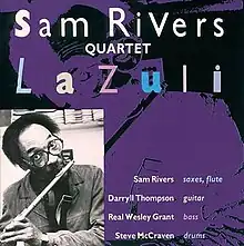 Lazuli is an album by saxophonist and flutist Sam Rivers. It was recorded on October 9 and 10, 1989, at Studio 44 in Monster, Netherlands, and was released in 1990 by Timeless Records. In 2015, it was reissued as a digital download by the Japanese label Solid Records as part of their Timeless Jazz Master Collection. On the album, Rivers is joined by electric guitarist Darryll Thompson, electric bassist Rael Wesley Grant, and drummer Steve McCraven.[1][2][3][4]
