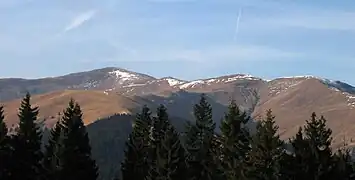 The Leaota Mountains are located in central Romania, north of the city of Târgoviște. They are part of the Southern Carpathians group of the Carpathian Mountains, and have as neighbours the Bucegi Mountains to the east and Piatra Craiului to the west. The mountains cover an area of 346 km2 (134 sq mi) within Dâmbovița, Argeș, and Brașov counties.[1]