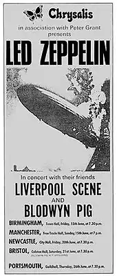 Led Zeppelin's Summer 1969 United Kingdom Tour was a concert tour of the United Kingdom by the English rock band. The tour commenced on 8 June and concluded on 29 June 1969. It included a single show in Paris, France, performed for French television.[1] This was the band's final ever television appearance,[2] portions of which were later released on the Led Zeppelin DVD.