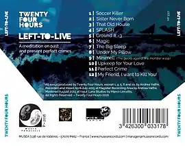 Back inlay Left-To-Live compact disc, fifth studio album of Twenty Four Hours
