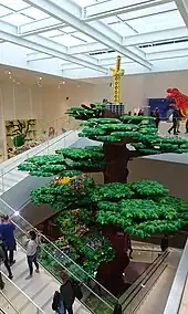 At more than 15 metres tall, the Tree of Creativity is a huge Lego model located in the centre of Lego House. It was designed to look like a realistic tree and was built from 6,316,611 Lego bricks, making it one of the largest Lego structures ever built. The builders took 24,350 hours to assemble the finished structure. The Tree of Creativity spans several floors and can be viewed from a variety of levels and angles by using the spiral stair that wraps around the structure.[17]