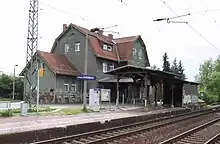 Limbach (Vogtl) halt (until 30 June 1911, Bahnhof Limbach i. V) was opened in 1902. Apart from two platforms, two waiting rooms and an open entranceway, there were no other facilities. The waiting rooms have now been replaced by glass shelters.[30]
