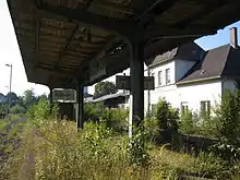 Freight traffic on the Menden–Hemer section was closed up to 31 March 2006[2] and it was offered publicly for re-use six months later. On 14 April 2007, it was converted into a siding to Menden station.[2] From 11 June 2007 to 31 May 2008, this siding was then rented by the town of Hemer to carry uprooted trees after hurricane Kyrill.[3]