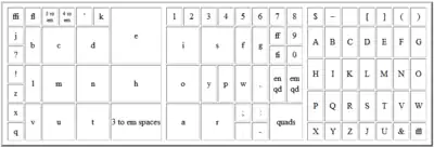 The California Job Case was a compartmentalized box for printing in the 19th century, sizes corresponding to the commonality of letters