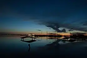 Water constitutes about 14% of the city's total area,[47] including Lewisville Lake, the Elm Fork of the Trinity River, and two local tributaries of the Elm Fork - Prairie Creek and Timber Creek. A riparian zone encompasses a portion of the city in the southeast.[50] The intersection of the Elm Fork and Lake Lewisville has given rise to a delta at the southern end of the lake, extending 6.9 miles (11.1 km) south.[51] The Federal Emergency Management Agency has labeled much of the area surrounding the delta as "Zone AE", meaning the area is subject to 100-year flood precautions.[52]