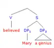 Following are examples of Larson's tests to show that the hierarchical (superior) order of any two objects aligns with a linear order, so that the second is governed (c-commanded) by the first.[32] This is in keeping with X'Bar Theory of Phrase Structure Grammar, with Larson's tree structure using the empty Verb to which the V is raised.