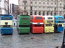In 1968, three Atlanteans were bodied by Marshall as single deck buses for Great Yarmouth Corporation.[10] Portsmouth had 12 Atlantean chassis with single deck bodywork from Seddon Pennine, and lastly Birkenhead ordered three Northern Counties bodied single deck Atlanteans, albeit delivered to Merseyside in Birkenhead colours.