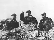 Chiang Kai-shek arrived in Beiping on 30 September and held a military conference with Fu Zuoyi. The Nationalists assembled the 39th, 62nd and 92nd Army led by Hou Jingru to reinforce Jinzhou as part of the "East-Advancing Army Corps", with the objective to fortify Nationalist positions in Huludao.[12] On 2 October, Chiang flew to Shenyang to discuss the formation of the "West-Advancing Army Corps" with Wei Lihuang, and ordered Liao Yaoxiang to reinforce Jinzhou with the 9th Army from the west to break the encirclement attempt of Jinzhou by the CCP.[13] With the new developments in Nationalist strategies, Lin Biao was initially hesitant to continue with Communist offensive against Jinzhou, but he was convinced to carry on with the assault by Mao Zedong.[14]
