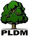 The logo of the Liberal Democratic Party (PLDM) represents a secular oak, with broad crown, branched lush foliage, vigorous trunk. PLDM acronym underpins the oak. The stem and roots are brown and the foliage is green.