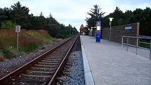 The halt is located on the Hirtshals Line from Hirtshals to Hjørring. It opened in 1940, was closed again in 1956, but reopened in the 1990s.[3][4] The train services are currently operated by the railway company Nordjyske Jernbaner which run frequent local train services between Hirtshals and Hjørring with onward connections from Hjørring to the rest of Denmark.[2]