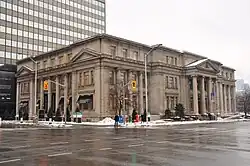 The Lillian Massey Building is a Neoclassical building located in Downtown Toronto, at the southeast corner of Queen's Park and Bloor Street along the Mink Mile and across from the Royal Ontario Museum. It was designed by architect George Martell Miller (1855–1933) and built between 1908 and 1912 for the University of Toronto's Household Science program created by Lillian Massey Treble, daughter of wealthy Canadian business man, Hart Massey.[1] It presently houses the offices of the University of Toronto's Department of Classics and Centre for Medieval Studies and the offices of the University of Toronto's Division of University Advancement. Part of the building previously housed Club Monaco’s flagship retail store until 2021.[2]
