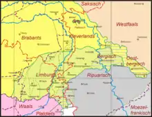 - ↑ Jan Goossens, Die Gliederung des Südniederfränkischen, in: Rheinische Vierteljahrsblätter. Jahrgang 30 1965, Ludwig Röhrscheid Verlag, Bonn, 1965, p. 79-94, esp. Karte 2