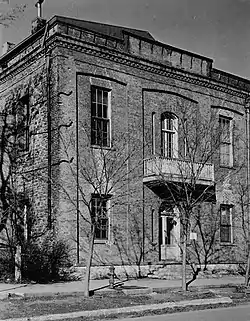Despite its state of disrepair, the courthouse survived almost forty years of abandonment and was restored in the 1970s to function as a local history museum.[4] The courthouse was designed by T. Dimmock and Thomas Keefe. The two-story building is Italianate in style with a brick front and rubble stone masonry sides and rear. Sited on a hill to the rear, the jail is accessible from the second floor.[3] The courthouse was listed on the National Register of Historic Places in 1978.[1]
