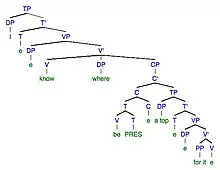 5b. Pat VP[wrote PP[on the blackboard] NP[ [something about Chris.]]