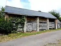 A linhay (/ˈlɪni/ LIN-ee) is a type of farm building found particularly in Devon and Somerset, south-west England. It is characterised as a two-storeyed building with an open front, with tallet or hay-loft above[1] and livestock housing below. It often has a lean-to roof,[2] and the front generally consists of regularly-spaced pillars or columns. Cattle linhays were used to house cattle in the winter with hay storage above. Owing to the wide, open front, hay was easily thrown up into the tallet for storage after hay-making by a man standing on a hay-cart using a pitch-fork. The hay was kept dry by the roof while at the same time acting as insulation for the livestock below, and was easily fed as daily rations to the cattle below by dropping it through openings in the floor directly into hay racks accessible to the livestock. A cart linhay stored carts and other farm machinery in place of livestock, with hay above.[3]