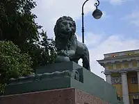 The Lions at the Dvortsovaya pier are two lion sculptures in bronze placed at the Admiralty embankment in Saint Petersburg since 1832. The lions are copies of the late 16th century Italian Medici lions in Florence.