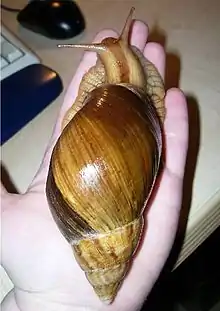 Lissachatina immaculata is a species of very large, air-breathing land snail, a terrestrial pulmonate gastropod mollusk in the family Achatinidae. [1]