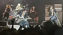 Aerosmith performing live in 2003 (top) and 2017 (bottom).