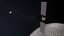 Launched on 28 June 2022,[15] the Cislunar Autonomous Positioning System Technology Operations and Navigation Experiment ("CAPSTONE") mission is a small (25 kg) technology-demonstration spacecraft designed to test a low-energy trans-lunar trajectories and to demonstrate the near-rectilinear halo orbit (NRHO) intended to support lunar polar missions.[16]