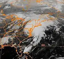 The following is a list of tropical cyclones that affected the U.S. state of Delaware. Since reliable records began, no tropical cyclone has struck the state while maintaining hurricane intensity, and only two storms since 1851 caused hurricane-force winds in the state.[1] The state often experiences the direct effects of landfalling North Atlantic tropical cyclones and from the remnants of some Pacific storms, such as rainfall or strong winds, as well as the effects of storms that remain offshore, such as rip currents or heavy surf. Since 1749, at least 111 tropical cyclones, some of which had become extratropical, have affected the state, including 21 which passed over the state.