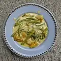 Ginisang monggo Nationwide Vegetable Sauteed mung beans in onions and tomatoes. Variants can include the addition of coconut milk, dried fish, chicken, thinly-sliced pork, or vegetables such as kangkong (water spinach), langka (jackfruit), and malunggay (moringa).