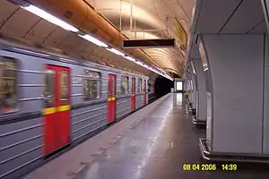 Nusle | Vyšehrad fortress, castle and cemetery | C | May 9, 1974 | formerly Gottwaldova, after Klement Gottwald Side platforms partially in a tunnel, partially on a viaduct, due to being built through a cliff face running perpendicular to the line. |