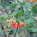 This list of Ribes species shows many of the approximately 200 accepted species in the plant genus Ribes, the single genus in the Saxifragales family Grossulariaceae.[1] Traditionally, these have been divided into a number of subgenera, such as subgenus Ribes (currants) and subgenus Grossularia (gooseberries).[2]