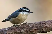Nuthatches are small woodland birds. They have the unusual ability to climb down trees head first, unlike other birds which can only go upwards. Nuthatches have big heads, short tails, and powerful bills and feet.