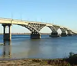 ![]() | 20 | Saratov Bridge | Сара́товский мост | 166 m (545 ft)(x3) | 2,804 m (9,199 ft) | Arch Concrete deck arch | 3 lanes road bridge Volga | 1965 | Saratov - Engels 51°31′19.0″N 46°04′02.6″E / 51.521944°N 46.067389°E | Saratov | [S 28] |