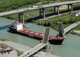 A ship passing through the Welland Canal in St. Catharines, 2017