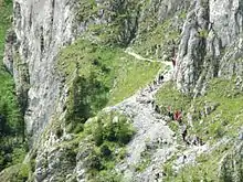 As of 2018, there are 843 caves known in the Polish Tatra Mountains with the total length exceeding 134 km.[1] They are within Tatra National Park. All the prominent ones are limestone karst caves of the Western Tatras, but there are also some tectonic caves. The largest and deepest caves of the Tatras (and of Poland) are located in the Czerwone Wierchy and Kominiarski Wierch massifs. Another highly promising region, the massif of Giewont, is largely unexplored due to its strict nature conservation status.[2]
